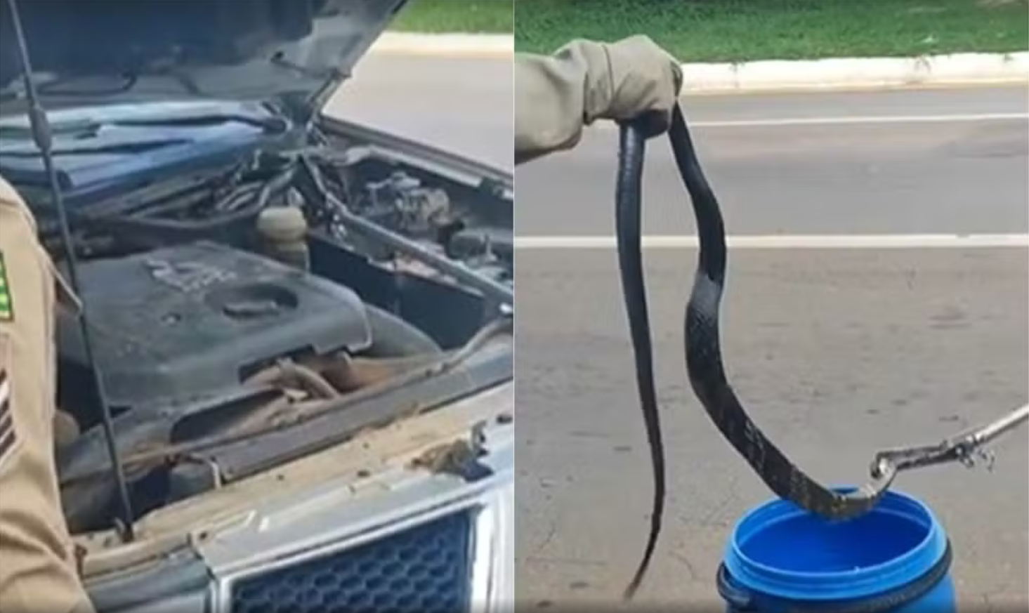 Uma cobra viajou cerca de 70 quilômetros escondida no motor de um carro e só foi descoberta depois que o veículo apresentou um problema mecânico, segundo o Corpo de Bombeiros. O animal foi encontrado sem ferimentos após o motorista levar o carro para uma oficina em Anápolis, a cerca de 55 km de Goiânia.